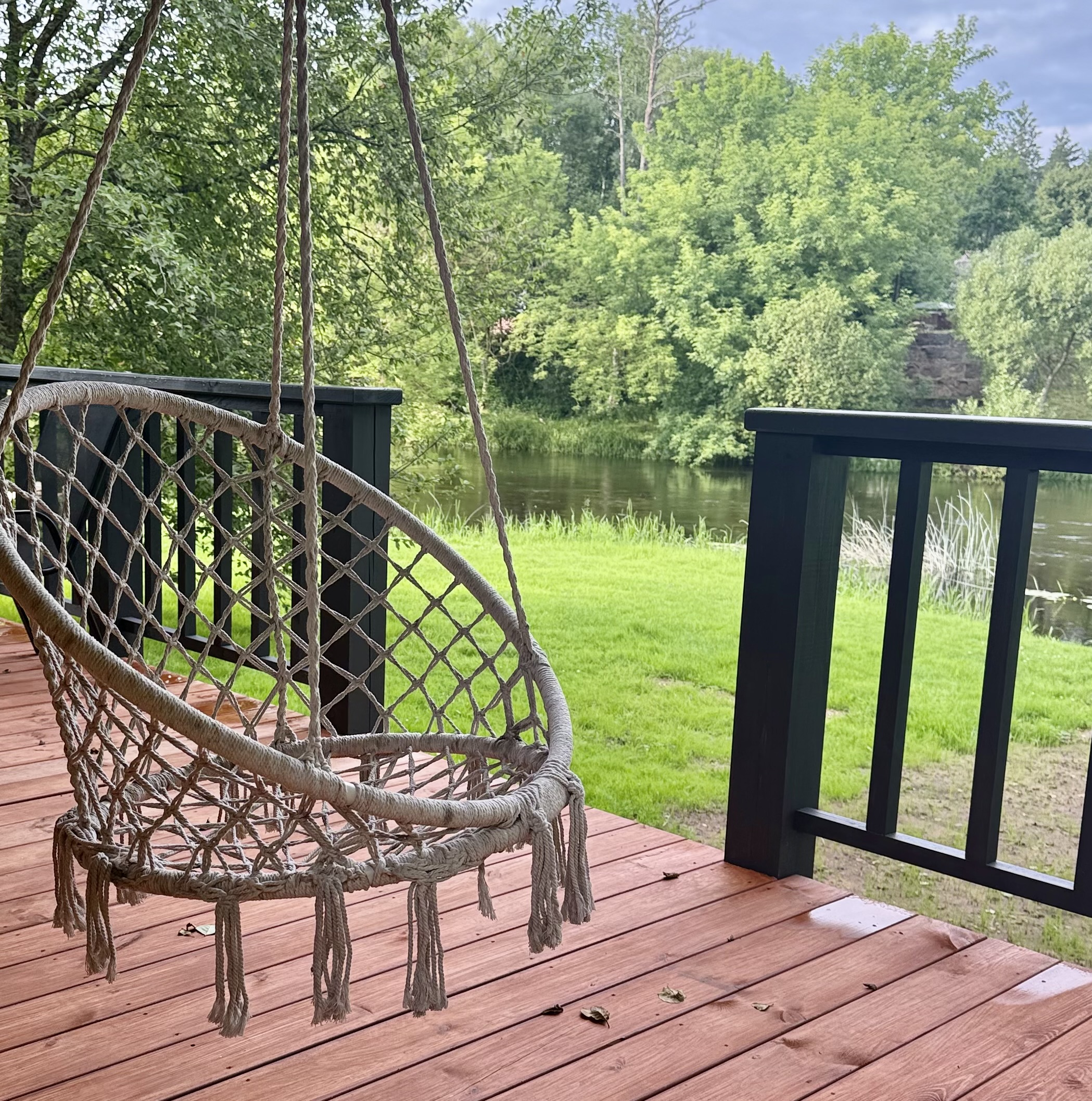 Poilsis ar šventė sodyboje su pirtimis ir kubilu ant upės kranto. Galėsite atsipalaiduoti prie jaukaus židinio, pažaisti tinklinį, krepšinį, futbolą, pažvejoti. Yra galimybė užsisakyti maistą.
